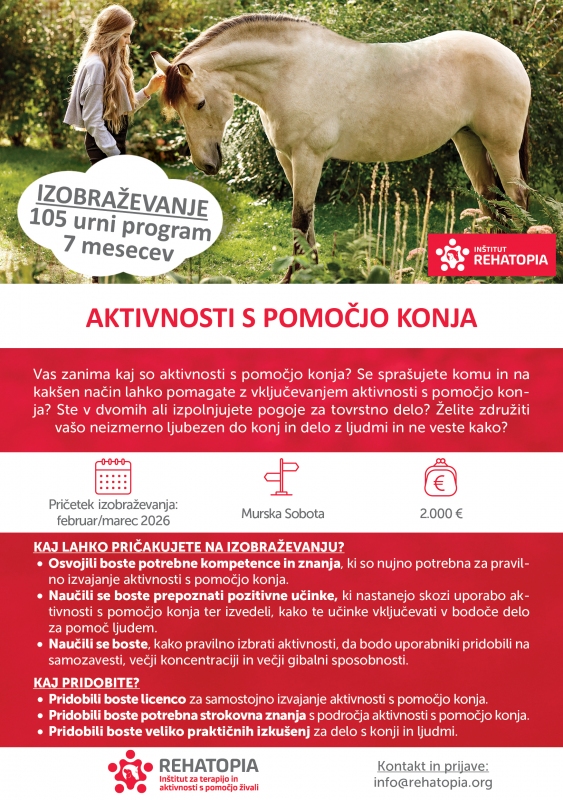 - Izobraževalni program: STROKOVNI SODELAVEC ZA IZVAJANJE AKTIVNOSTI S POMOČJO KONJA